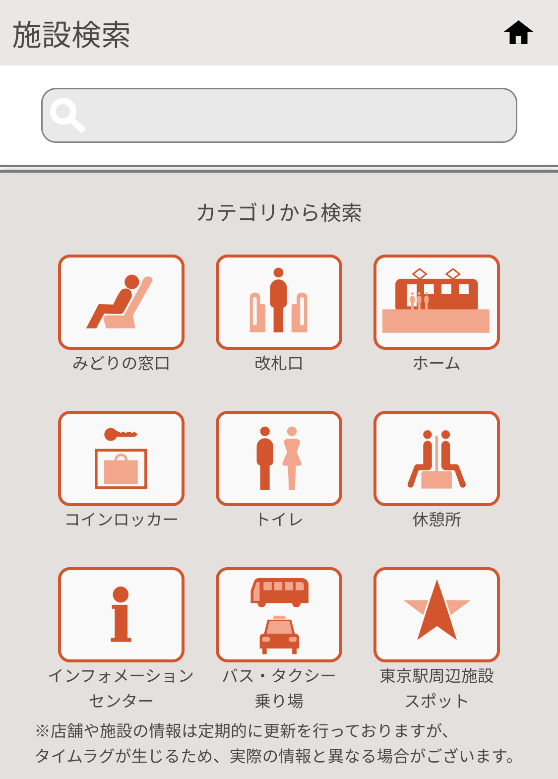 「施設を探す」では、「コインロッカー」「トイレ」「改札口」などを表示することができます。